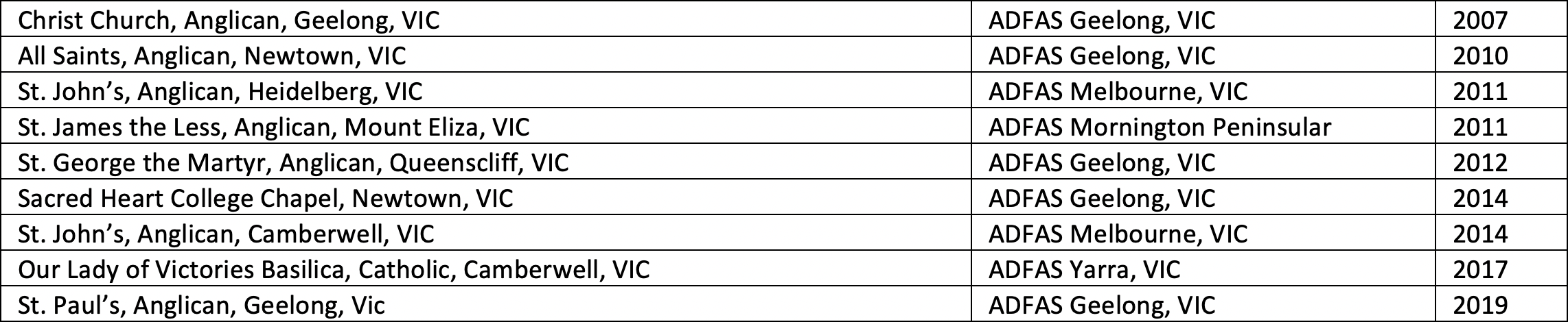 St. Philips Anglican, York Street, Sydney, NSW ArtsNational Ku-ring-gai, NSW 2012