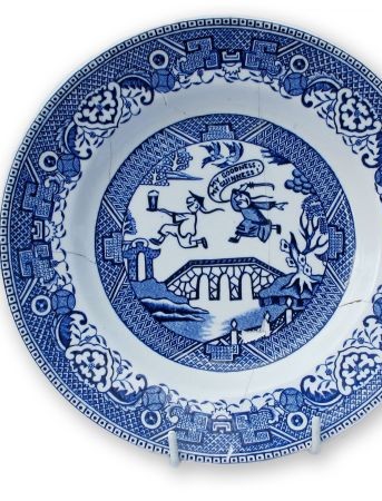 Two lovers meeting underneath the orange tree, an elopement, a fierce father and jilted suitor; pursuit across a bridge and into a little boat; tragedy and death. Two love-birds flying together forever – all under the gentle sway of the willow tree – on the instantly recognisable ‘Willow Pattern Plate’. From the early nineteenth century it was well-known and much loved design on thousands of English teapots, plates and dishes. Is it Chinese? Is it English? With one or two surprises, the story behind this famous image takes us from the origins of blue and white designs in the exotic East to the emerging wealth of the Midlands pottery towns.